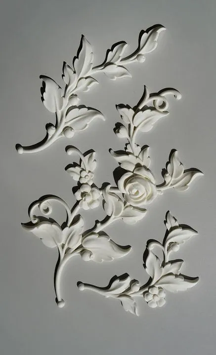Силиконовые формы изготавливаются методом послойного нанесения жидкого силикона на мастер-модель. Многокомпонентные силиконы обеспечивают точность воспроизведения деталей до 0,05 мм и долговечность до 1000 циклов литья. Декоративная лепнина полиуретановая получается с идеальной поверхностью, не требующей дополнительной обработки.