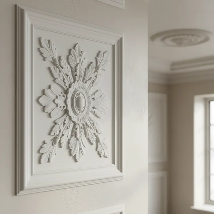 Гипс: более глубокий выразительный рельеф, традиционный материал классических интерьеров, возможность создания уникальных элементов. Минус: тяжелый, боится влаги, дороже, монтаж сложнее (требует усиленного крепления).