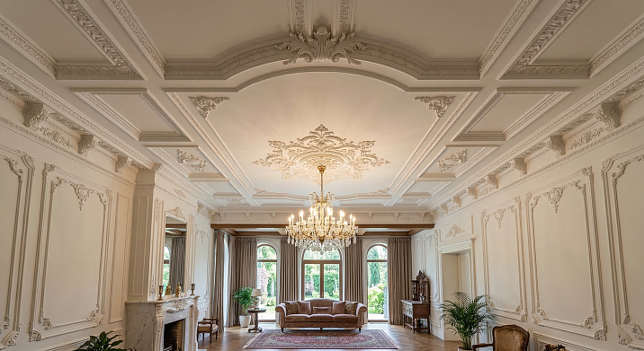 Как оформить потолок лепниной: рабочие идеи для разных помещений