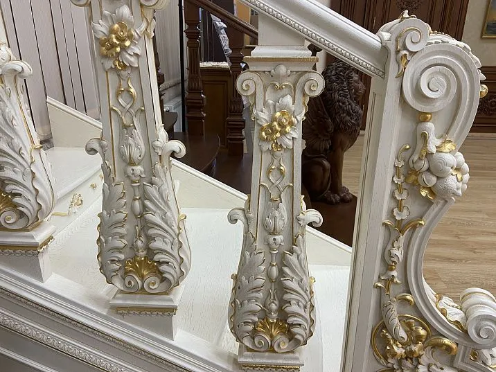 Барокко поражает пышностью и театральностью. Сложные многоуровневые композиции, обилие позолоты, динамичные формы требуют соответствующего масштаба и окружения. Барочные элементы не терпят компромиссов — они должны быть максимально выразительными, богато декорированными, впечатляющими.