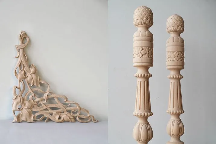 ● Резьба и инкрустация: Традиционные методы резьбы по дереву теперь совмещаются с современными технологиями лазерной резки, что позволяет создавать сложные декоративные узоры. Ручная резьба придает изделиям неповторимый шарм и отражает мастерство ремесленников.