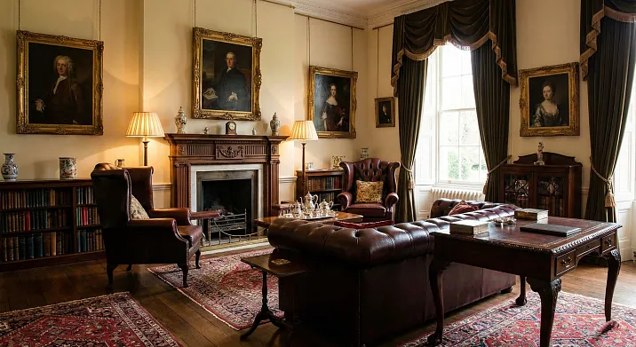 Английский аристократизм отличается от французского или итальянского. Французская роскошь демонстративна, итальянская экспрессивна, английская сдержанна. Английский лорд не выставляет богатство напоказ — он знает, что оно есть, и этого достаточно. Мебель добротная, но не кричащая. Ткани дорогие, но приглушённых тонов. Декор присутствует, но не доминирует.