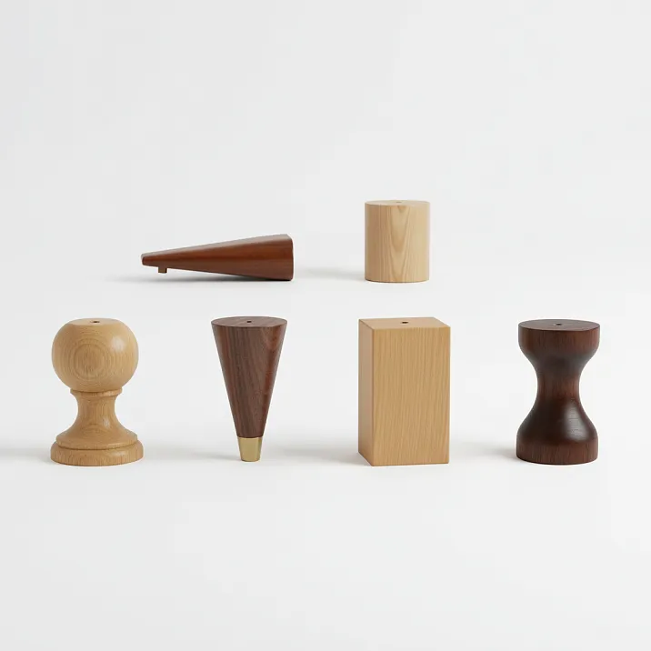 Комбинированные опоры сочетают материалы: стальной стержень внутри деревянной оболочки даёт прочность металла с эстетикой дерева. Металлическая трубка, обточенная деревом, снаружи выглядит как массив, но несущую функцию выполняет металл. Такая конструкция дороже цельнодеревянной, но оправдана для тяжёлых диванов, где чистое дерево требуемого сечения выглядело бы громоздко.