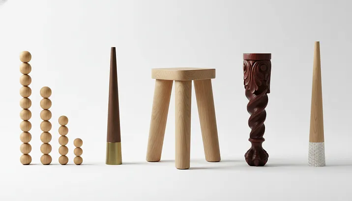 В каталоге STAVROS представлено более 150 моделей мебельных ножек и опор — от лаконичных скандинавских форм до роскошных резных конструкций в стиле барокко и ампир. Классические точёные опоры с каннелюрами и капителями, современные минималистичные конусы, этнические резные варианты, индустриальные металлические конструкции — выбор для любого стиля интерьера и бюджета проекта.