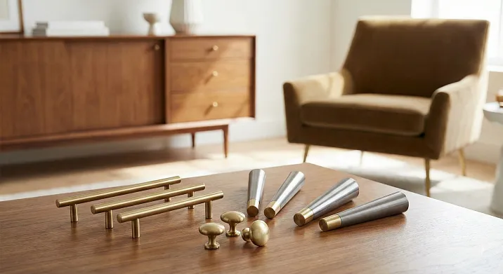 Скандинавский минимализм диктует иные правила. Лаконичные формы, светлая древесина, функциональность без излишеств — вот его кредо. Простые геометрические ручки, прямые или слегка конусообразные ножки, отсутствие декоративных излишеств подчёркивают красоту материала и чистоту линий. Такая фурнитура визуально облегчает мебель, создаёт ощущение воздушности и простора.