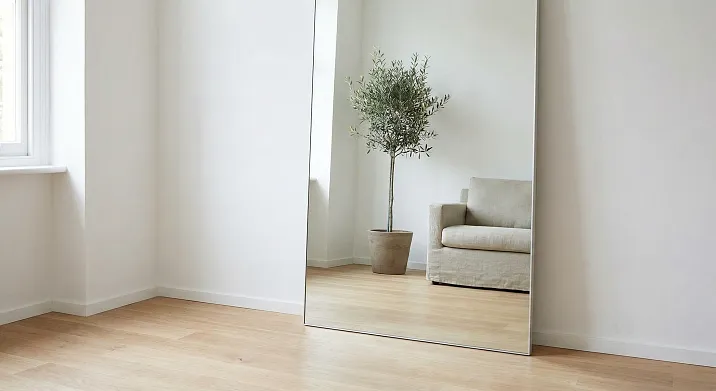 Зеркало в минималистичном интерьере — это не декоративный аксессуар, а функциональный элемент, который расширяет пространство, увеличивает количество света, создает глубину. При этом само зеркало должно быть максимально лаконичным: без вычурных рам, без орнаментов, без золочения.