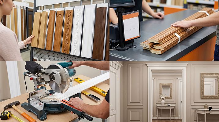 Ассортимент в едином стиле. Лучший сценарий — наличники для дверной коробки от производителя, у которого одновременно есть молдинги, погонажные изделия, карнизы и декоративные накладки. Это позволяет собрать все элементы из одной «семьи» без компромиссов.
