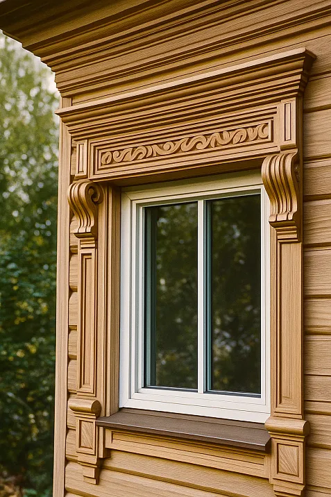 Окна - это глаза дома, через которые здание смотрит на мир и впускает свет в свои комнаты. Обрамление из дерева превращает функциональные проемы в архитектурные акценты, создающие характер фасада. Деревянные наличники и обрамления - это не просто декоративная рамка, а комплексная система, выполняющая защитные, эстетические и символические функции. В эпоху типовой застройки, когда дома становятся безликими коробками, резные обрамления окон возвращают архитектуре индивидуальность, связь с традициями, человеческий масштаб и теплоту натурального материала.