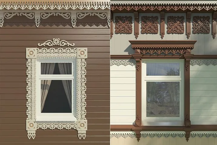 Для домов в русском стиле идеально подойдут классические решения с традиционными мотивами — солярными символами, растительными орнаментами, геометрическими узорами. Дома в скандинавском стиле лучше украшать простыми, лаконичными наличниками без излишней декоративности.
