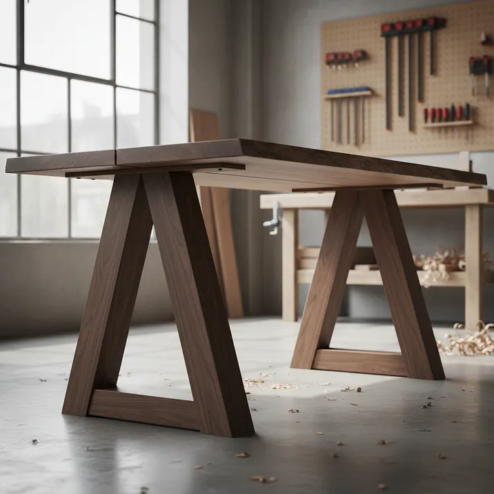 Диагональные распорки добавляют дополнительную жёсткость, особенно когда стол высокий, широкий или подвергается неравномерным нагрузкам. Распорка работает на растяжение и сжатие, предотвращая боковое смещение опор, превращая каркас в треугольную систему — самую устойчивую в природе.