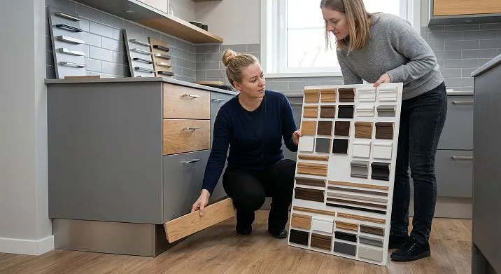 Профессионалы всегда заказывают комплектом: нижний профиль + молдинги + карниз + ручки + при необходимости ножки и накладки. Это единственный способ гарантировать согласованность всех элементов.