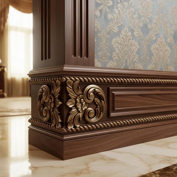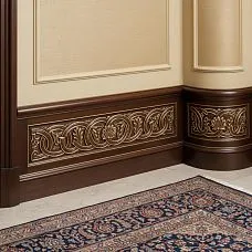 Барокко и рококо отличаются более сложными, изогнутыми формами. Здесь требуется высочайшее мастерство резчиков по дереву. Плинтусы могут включать растительные орнаменты, завитки, розетки — каждый элемент создается вручную.
