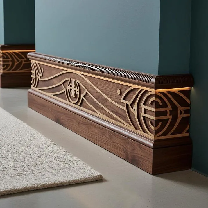 Плинтус индивидуального изготовления не ограничивается традиционными формами. Современные дизайнеры экспериментируют с: