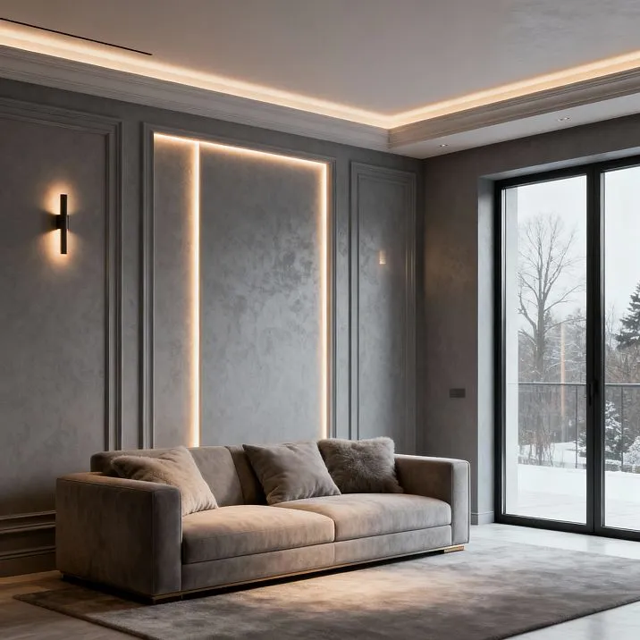 Интеграция с натяжными потолками и декоративным молдингами расширяет возможности. Световые линии подчёркивают архитектуру, выявляют объёмы, создают глубину. Многоуровневое освещение с независимым управлением контурами даёт гибкость сценариев от рабочего до релаксационного.