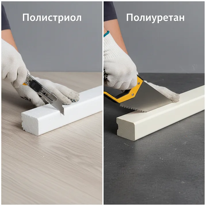 Неровные стены: Эластичность полиуретана позволяет компенсировать неровности стен до 1 см, плотно прилегая к поверхности. Полистирол в таких условиях оставит зазоры.