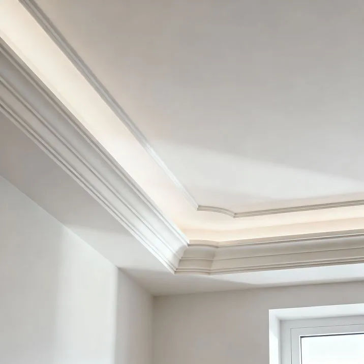 Особый интерес представляют карнизы из фитополимера под подсветку - инновационное решение, которое превращает потолок в источник мягкого рассеянного света, создает эффект парящей поверхности, визуально увеличивает высоту помещения. В этой статье мы подробно разберем типы карнизов, особенности их выбора и монтажа, расскажем о работе с натяжными потолками и раскроем секреты профессиональной окраски.