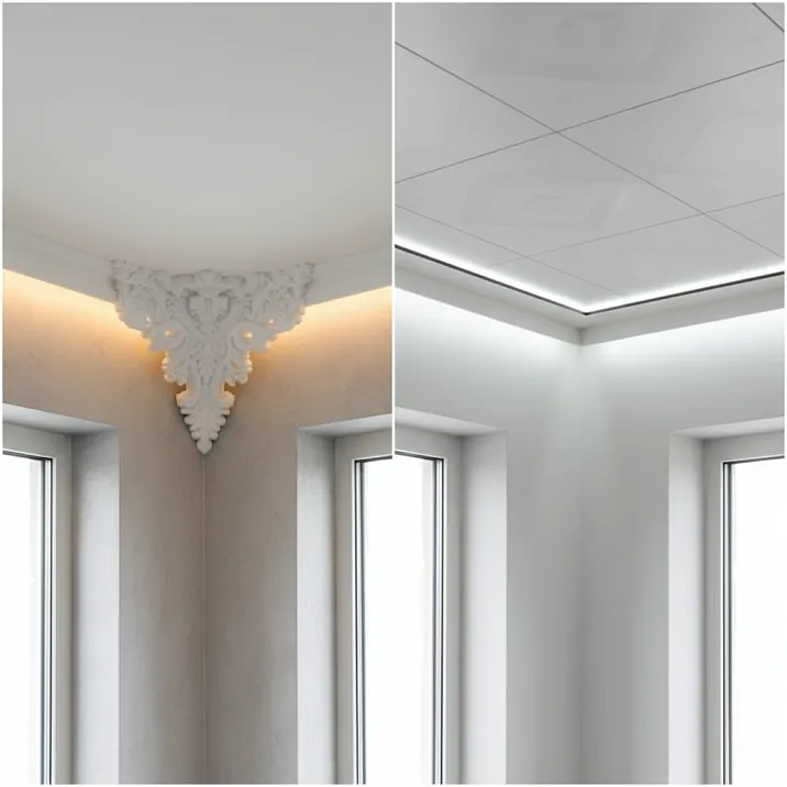 Выбор между экструдированным и инжекционным зависит от задач. Для простых гладких профилей в современных интерьерах оптимален экструдированный - дешевле, прочнее, влагостойкость выше. Для классических интерьеров с рельефным декором предпочтительнее инжекционный - позволяет создавать сложные объемные орнаменты с четкой детализацией.