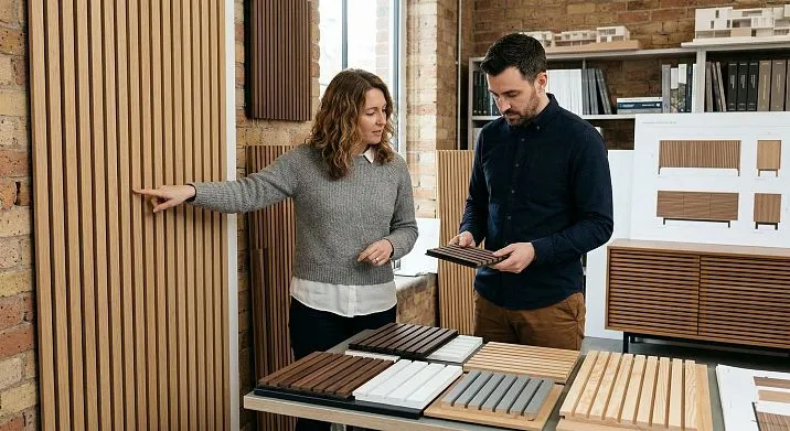 Перед финальной закупкой обязательно оцените материал живьём: текстура, цвет, профиль рейки. Фотографии на экране дают ограниченное представление о реальном виде материала. Образцы реечных панелей позволяют принять обоснованное решение до того, как партия материала будет заказана.