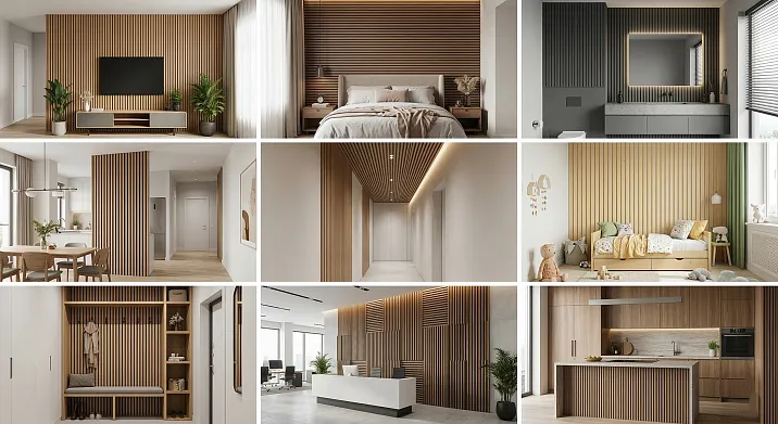 - Реечные панели в разных помещениях: визуальные описания
