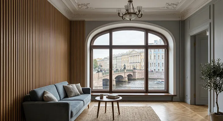Петербург — деревянный город в душе, несмотря на каменный фасад. Дерево в петербургском интерьере — это не экзотика, это возвращение к корням. Реечные деревянные панели из дуба или ясеня с масляным покрытием — выбор для проектов, где важна аутентичность материала.