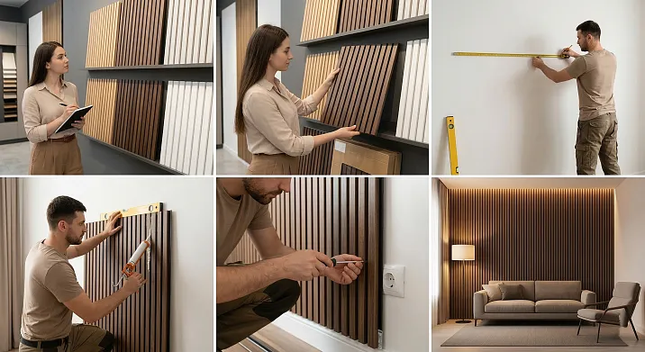 Реечные стеновые панели для внутренней отделки стен работают максимально эффективно в системе согласованных элементов. Вот как эта система строится шаг за шагом.