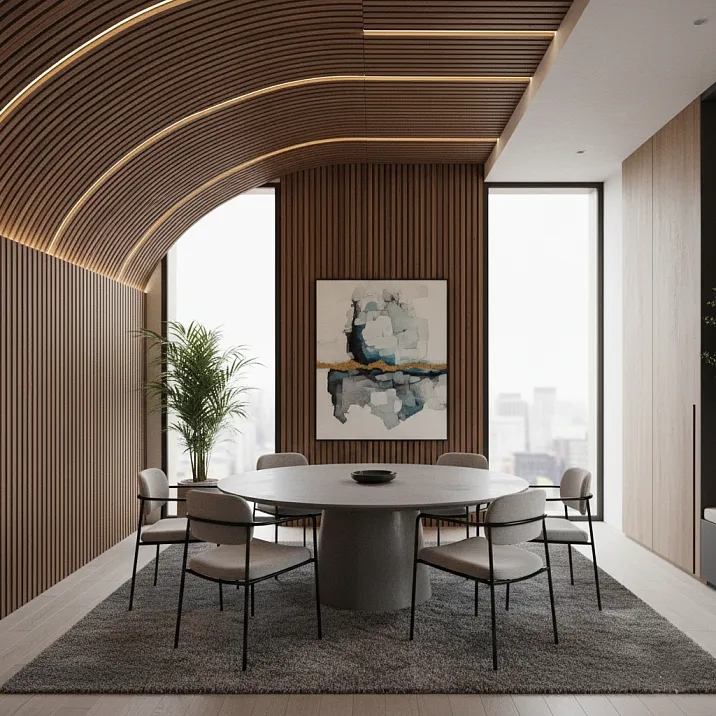 Как одним архитектурным приемом преобразить пространство, придать ему глубину, ритм и характер? Ответ прост - рейки из дерева на стену стали настоящим феноменом современного дизайна интерьеров, объединив функциональность с природной красотой. Эти изящные планки из натурального массива давно перестали быть просто строительным элементом - сегодня они представляют собой полноценный инструмент архитектурной выразительности, способный кардинально изменить восприятие помещения. От создания акцентных стен до зонирования пространства, от визуальной коррекции пропорций до улучшения акустики - возможности применения этих изделий поражают воображение. Натуральная текстура древесины, игра света и тени между планками, ритмичная структура вертикальных или горизонтальных элементов создают объемный выразительный эффект, который невозможно повторить никакими искусственными материалами.
