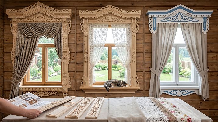 Совет: посмотрите на дом в целом. Какой ритм у брёвен или брусьев? Есть ли резной конёк на крыше, резные причелины? Все эти элементы должны звучать в унисон — и наличник связывает их в единую тему.