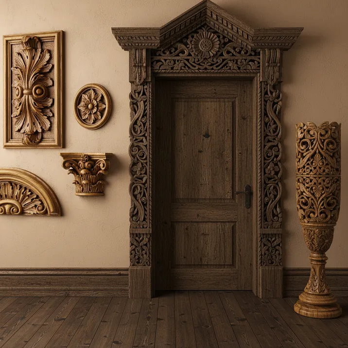 Резные деревянные накладки, орнамент из дерева и элементы домовой резьбы представляют собой мощный инструмент создания выразительных, глубоких, эмоционально насыщенных интерьеров. В эпоху массового производства и стандартизации резной декор возвращает пространству индивидуальность, связь с традициями мастерства, ощущение рукотворности и заботы о деталях.