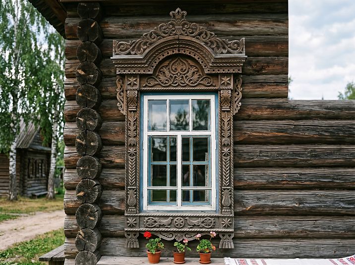 Связь с традицией домовой резьбы. Деревянный дом с резными наличниками — это не модный тренд и не ретро-игра. Это живая традиция народной архитектуры, которая уходит корнями на столетия вглубь. Домовая резьба по дереву — это целостная система: наличники, карнизы, причелины, кронштейны — всё связано единым орнаментальным языком. Войти в эту систему через наличник — самый органичный способ.