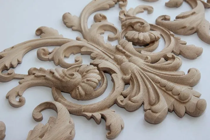 Резные аппликации — это небольшие декоративные элементы, которые легко монтируются на различные поверхности. Они придают мебели, дверям или стенам утончённый вид.