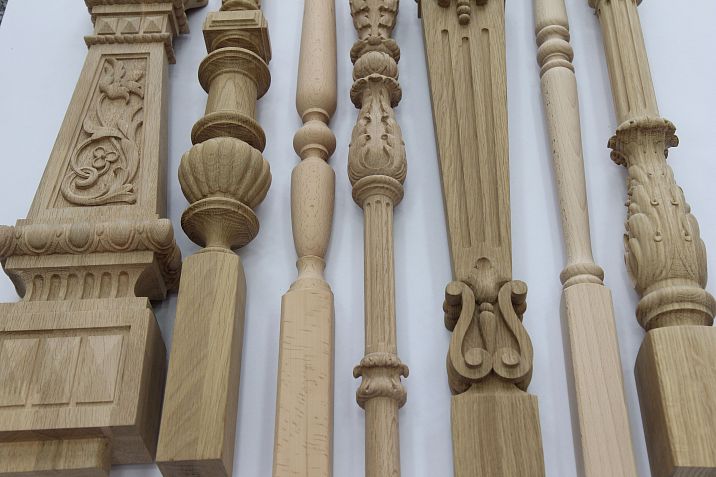 Черновая обработка выполняется на токарных станках с ЧПУ, что обеспечивает точность и повторяемость форм. Программа обработки рассчитывается с учётом особенностей каждой породы древесины — скорости резания, подачи, глубины съёма материала.