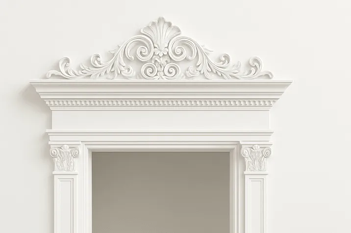 Классические сандрики отличаются строгими пропорциями, симметричными композициями и использованием традиционных архитектурных элементов. Такие изделия включают в себя консоли с волютами, гладкие или профилированные полочки, декоративные розетки и другие элементы ордерной системы.