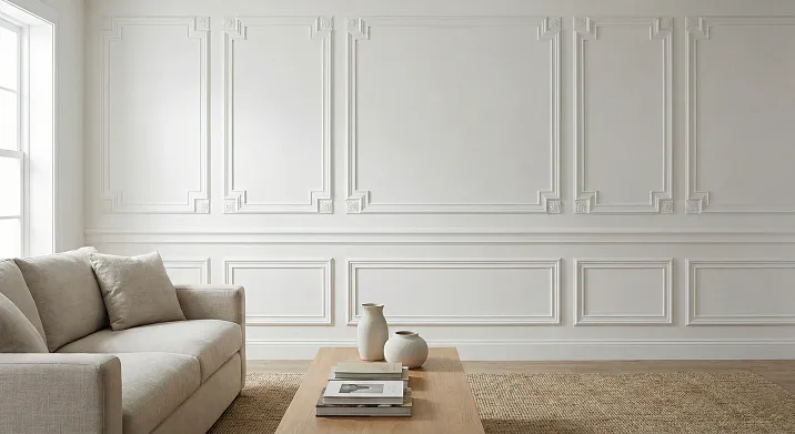 В 2026 году стеновой декор переживает возрождение. Минимализм последних двух десятилетий (белые стены, отсутствие декора, японская пустота) уступает место неоклассике — возврату к архитектурной выразительности, но с современным пониманием пропорций и цвета. Буазери (классические стеновые панели из молдингов) вновь актуальны, но исполняются не в тяжёлом дереве за миллионы рублей, а в лёгком полиуретане за десятки тысяч. Доступность технологии демократизировала роскошь — сегодня создать парижскую квартиру в духе Османа может любой владелец типовой двушки.