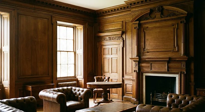 Дубовые панели и наличники — выбор для интерьеров, где ценятся традиции и долговечность. Дуб невероятно прочен, имеет выразительную крупнопористую текстуру, богатую гамму оттенков от светло-медового до тёмно-коричневого. Дубовая панельная отделка служит столетиями, не теряя красоты. Под маслом дуб приобретает глубину и благородство. Тонированный — даёт любой желаемый оттенок при сохранении текстуры. Морёный дуб с его чёрно-серыми тонами создаёт драматический эффект.