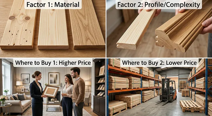 Цена деревянного плинтуса — это не произвольная цифра. Она формируется из нескольких конкретных составляющих, каждая из которых влияет на конечную стоимость количественно. Понимая эти факторы, покупатель перестаёт сравнивать «апельсин с яблоком» и начинает видеть реальную ценность каждой позиции.
