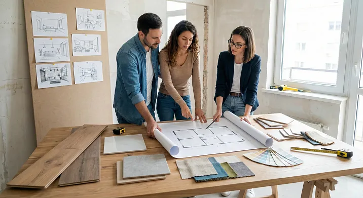 На основе диагностики разрабатывается дизайн-проект. Профессиональный проект включает планировку с размерами, развёртки стен с указанием отделочных материалов, схемы расположения розеток и выключателей, освещения, сантехники. Чем детальнее проект, тем меньше неожиданностей в процессе ремонта.