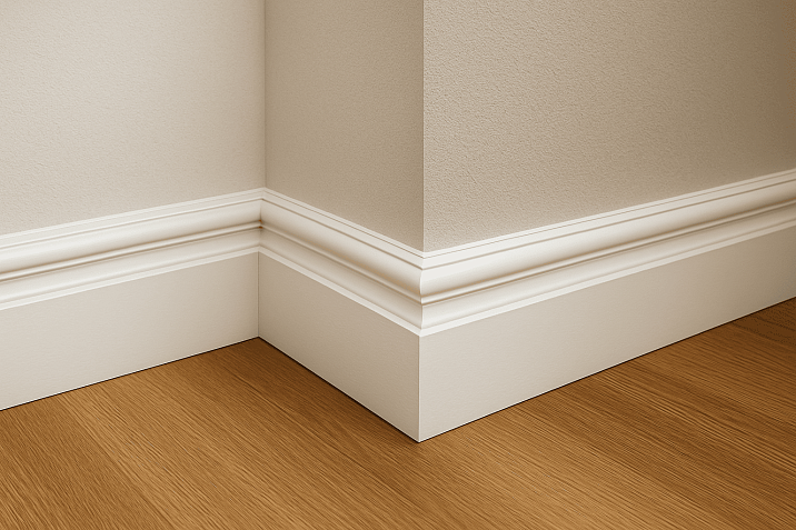 Плинтуса высокие напольные деревянные подходят для просторных помещений с высокими потолками. В классических интерьерах высокий плинтус подчеркивает торжественность и представительность пространства.