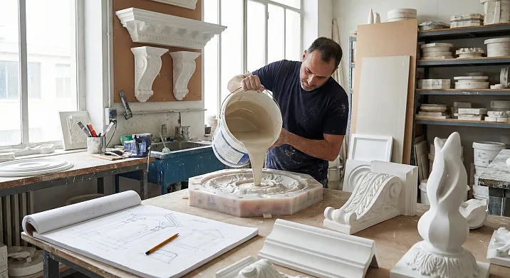 Решение — изготовление радиусных элементов в формах с заданной кривизной. Заказ лепнины из полиуретана включает создание формы по радиусу проема или колонны — молдинг отливается изогнутым, идеально вписывается в криволинейную поверхность без подгонки. Процесс сложнее прямых форм — кривизна требует точных расчетов, сегментирования (один изогнутый элемент заменяется тремя-пятью сегментами для удобства извлечения из формы), контроля геометрии. Стоимость выше в полтора-два раза, но результат — безупречная установка на изогнутую поверхность.