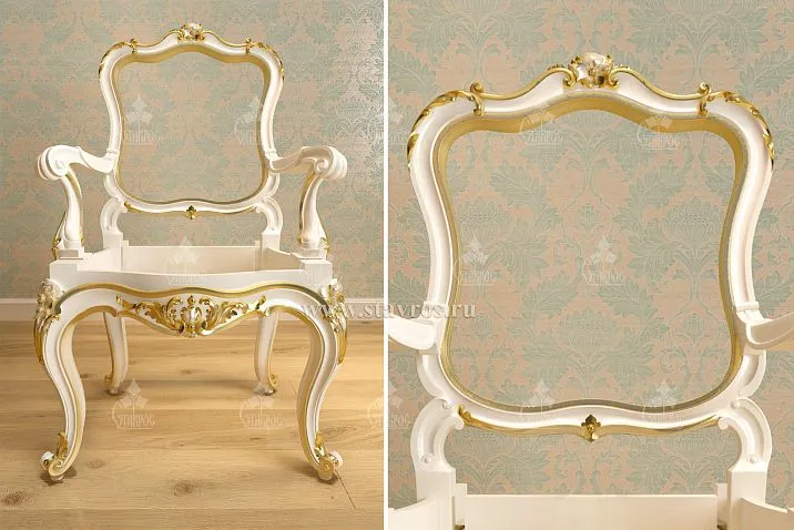 Ампирные молдинги отличаются строгостью линий и геометрической четкостью. Золотое покрытие подчеркивает их архитектурную выразительность, создавая ощущение торжественности и величия. Эти элементы идеально подходят для парадных помещений и представительских интерьеров.