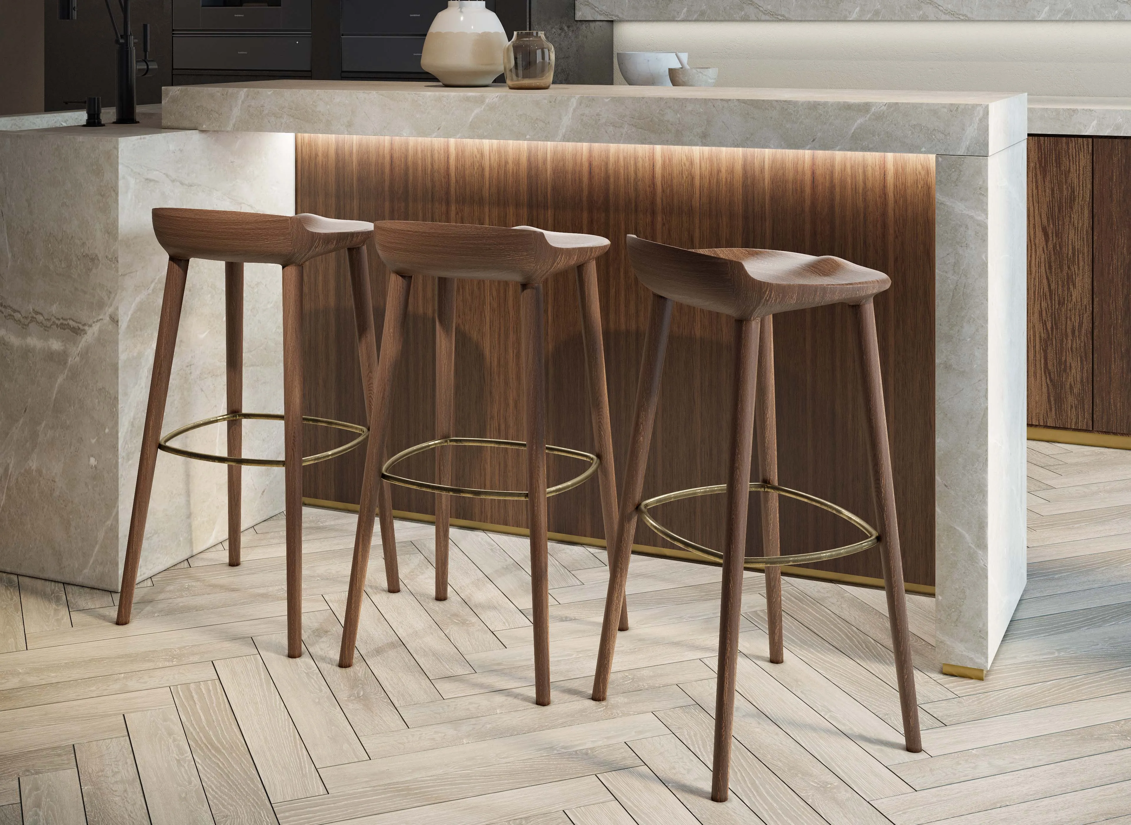 Устойчивая конструкция и плавная форма с закруглёнными деталями эффектно гармонирует с тактильной текстурой натуральной древесины, привнося в минималистичный интерьер ощущение тепла и уюта.