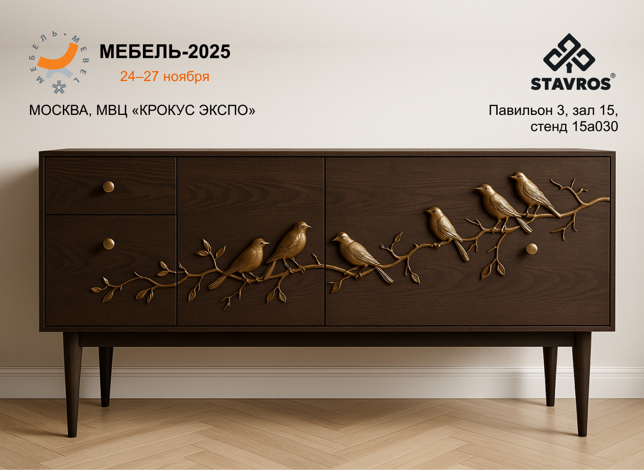 С 24 по 27 ноября 2025 года компания STAVROS примет участие в крупнейшем отраслевом событии мебельного рынка России и Восточной Европы — 36-й Международной выставке «Мебель, фурнитура и обивочные материалы — МЕБЕЛЬ-2025».