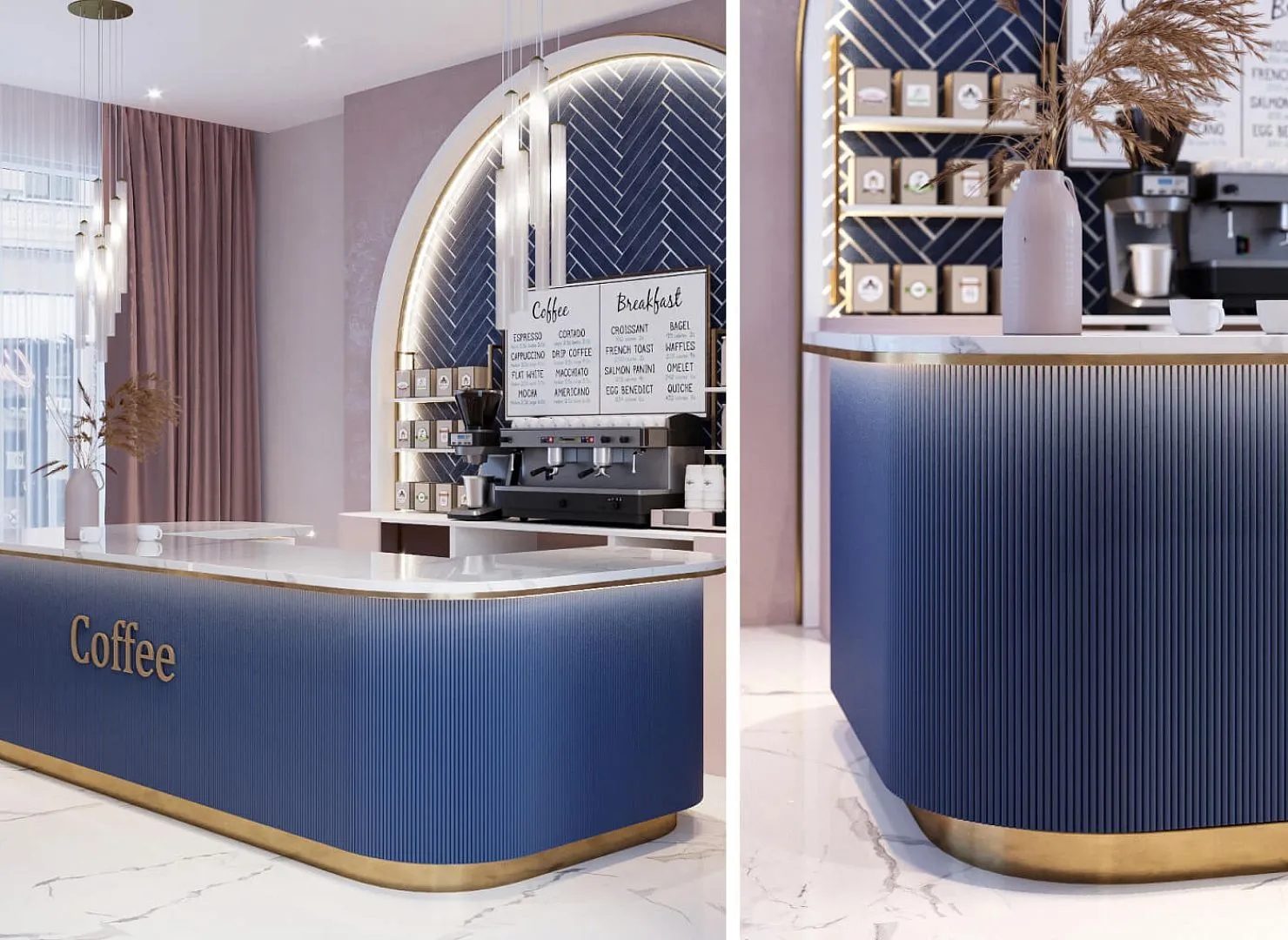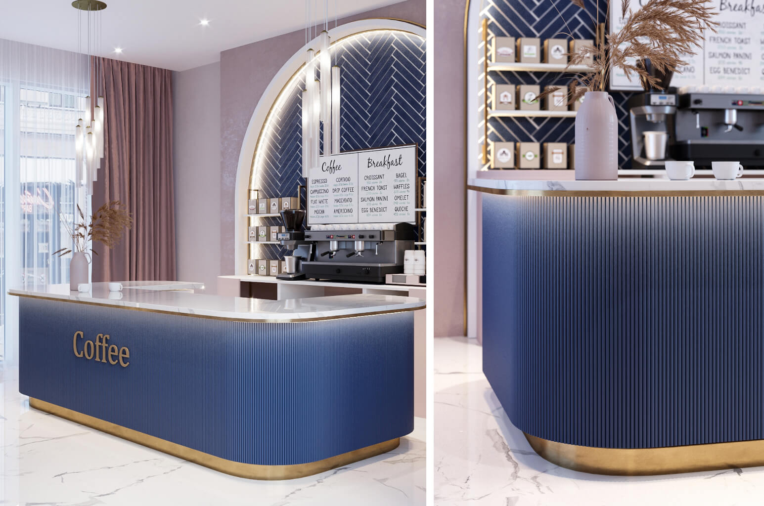 - Кухонные острова и барные стойки: идеальное решение для облицовки торцевых и лицевых скругленных поверхностей.