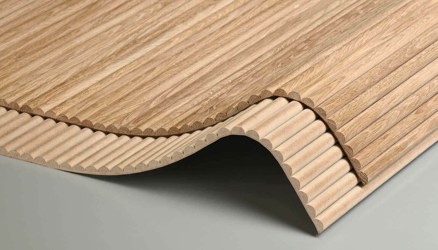Главное преимущество панели — способность работать на криволинейных поверхностях. Но она так же хорошо подходит и для плоских оснований, когда нужна ритмичная фактура без сборки из отдельных планок.