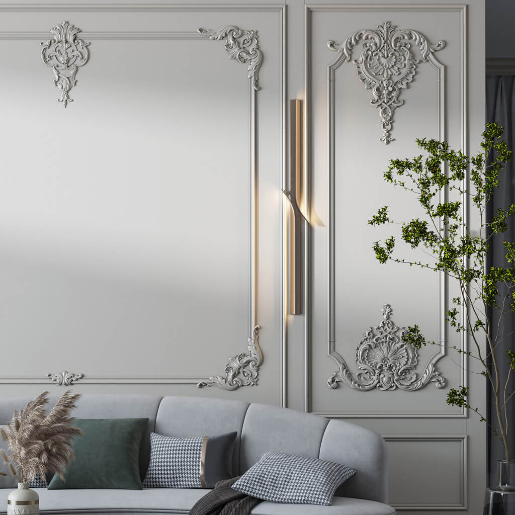 Декоративный элемент для неоклассики MLD-3-1.1 — это и про жилой сектор, и про коммерческие пространства одновременно. Его масштаб и орнаментальный вес работают там, где нужно производить впечатление.