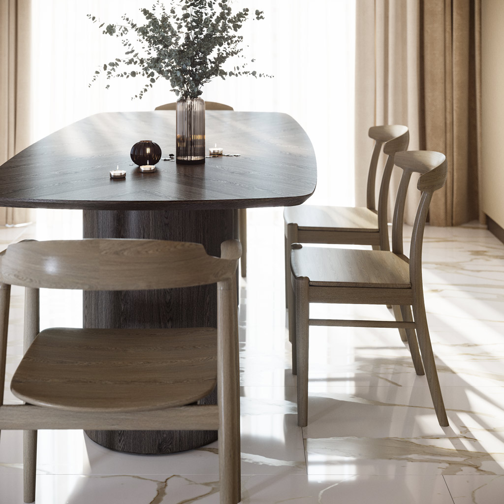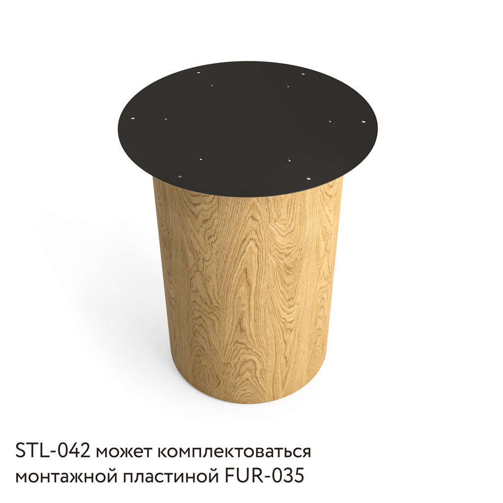 Подстолье STL-042 характеризуется нейтральным дизайном, позволяющим ему органично интегрироваться в интерьеры различных стилистических направлений. Цилиндрическая форма и качественная имитация натуральной древесины делают его подходящим как для классических, так и для современных дизайнерских концепций.