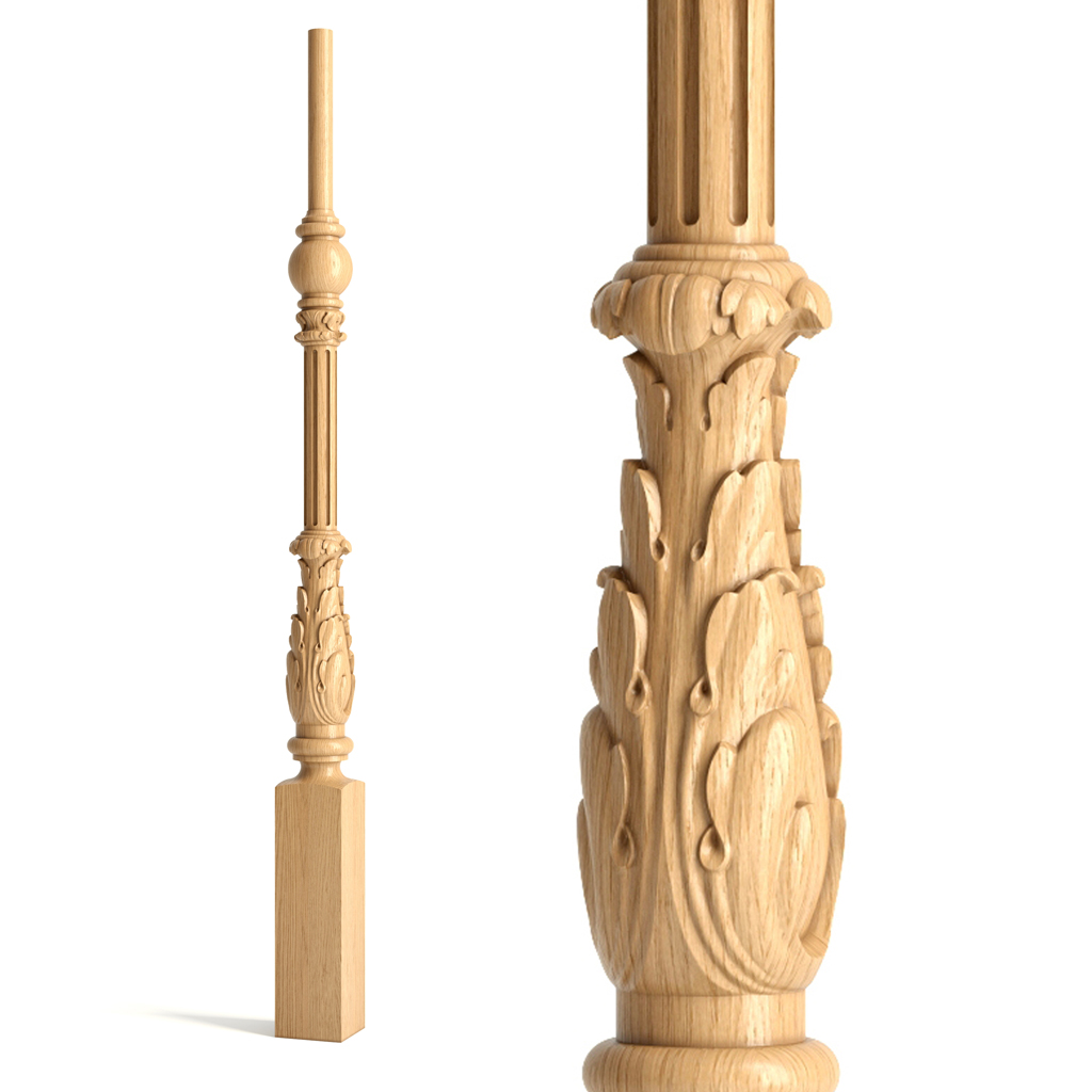 Вы хотите сделать свою лестницу не просто функциональной, но и красивой? Вы ищете уникальные и качественные комплектующие для лестниц из дерева? Тогда вам стоит обратить внимание на балясину для лестницы L-002, которая является настоящим шедевром резьбы по дереву. Эта балясина изготавливается из дуба или бука, двух самых прочных и долговечных пород дерева, которые отлично подходят для изготовления лестниц. Балясина L-002 имеет утонченную форму, созданную в стиле Ренессанс, который отличается гармонией, изяществом и богатством деталей. Данная модель украшена объемными резными акантовыми листьями, которые символизируют жизненную силу и растительность. В верхней части балясина дополнена вертикальными каннелюрами, которые придают лестнице легкость и воздушность. Эти балясины из дерева будут чудесно сочетаться с резными столбами L-069, выполненными в схожем дизайне. Такая композиция создаст эффект роскоши и изысканности в вашем интерьере.