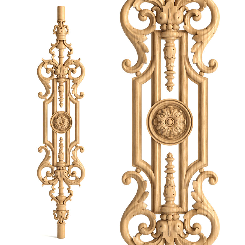 Потрясающая модель в стиле барокко, достойная самого роскошного интерьера! Деревянная балясина L-033 имеет симметричный дизайн и щедро украшена ажурным резным декором в виде изогнутых стеблей и листьев. В центре композиции – наша розетка R-001. Эта модель идеально впишется в классический интерьер, а также в интерьер в стиле рококо и барокко.