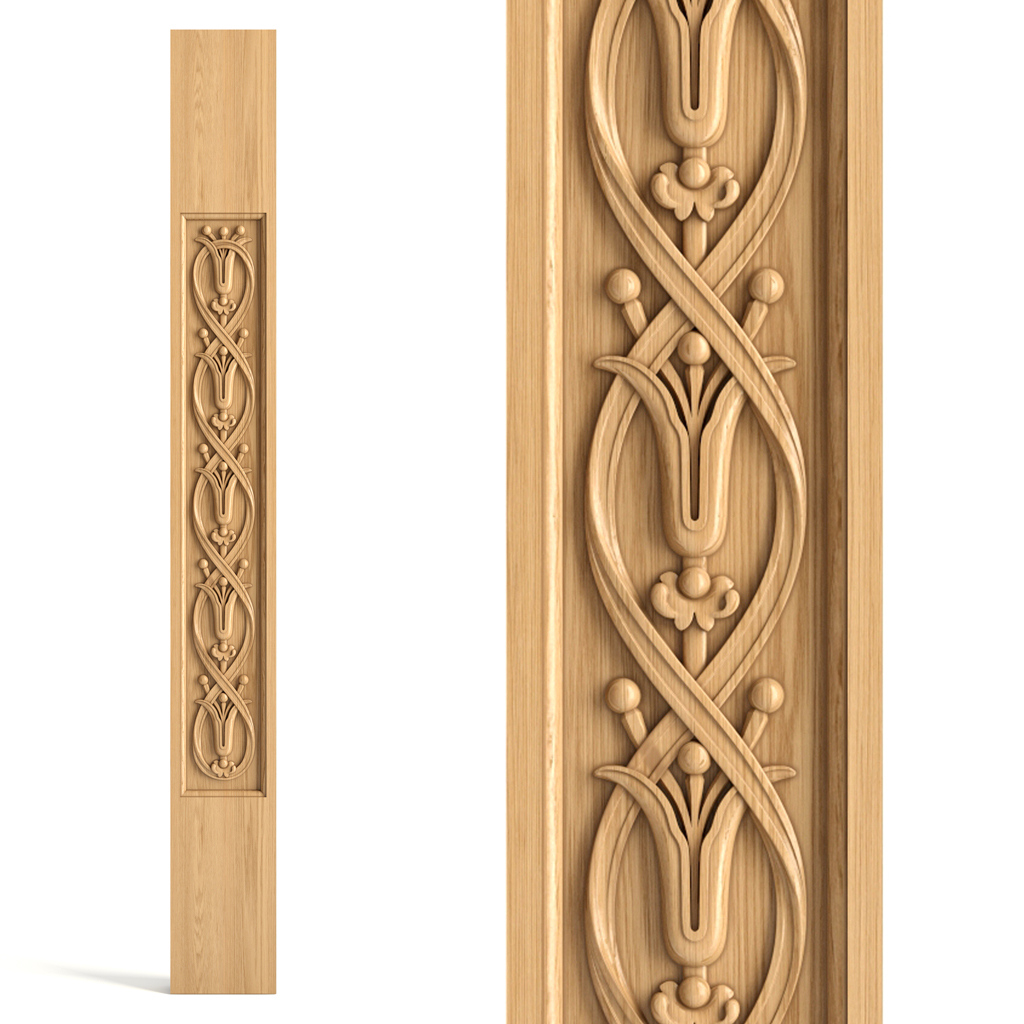 Плоская балясина L-100.1 из дерева - это особенная модель, которая отличается от обычных балясин своей формой и дизайном. Эта балясина имеет плоскую переднюю сторону, на которой расположена резная накладка в стиле ар-нуво. Этот стиль характеризуется изящными линиями, органическими формами, цветочными мотивами. В основе узора накладки - благородные лилии, обвитые лентами. Эти цветы символизируют чистоту, нежность, красоту, любовь. Они создают романтическое настроение и придают балясине изысканность и элегантность.