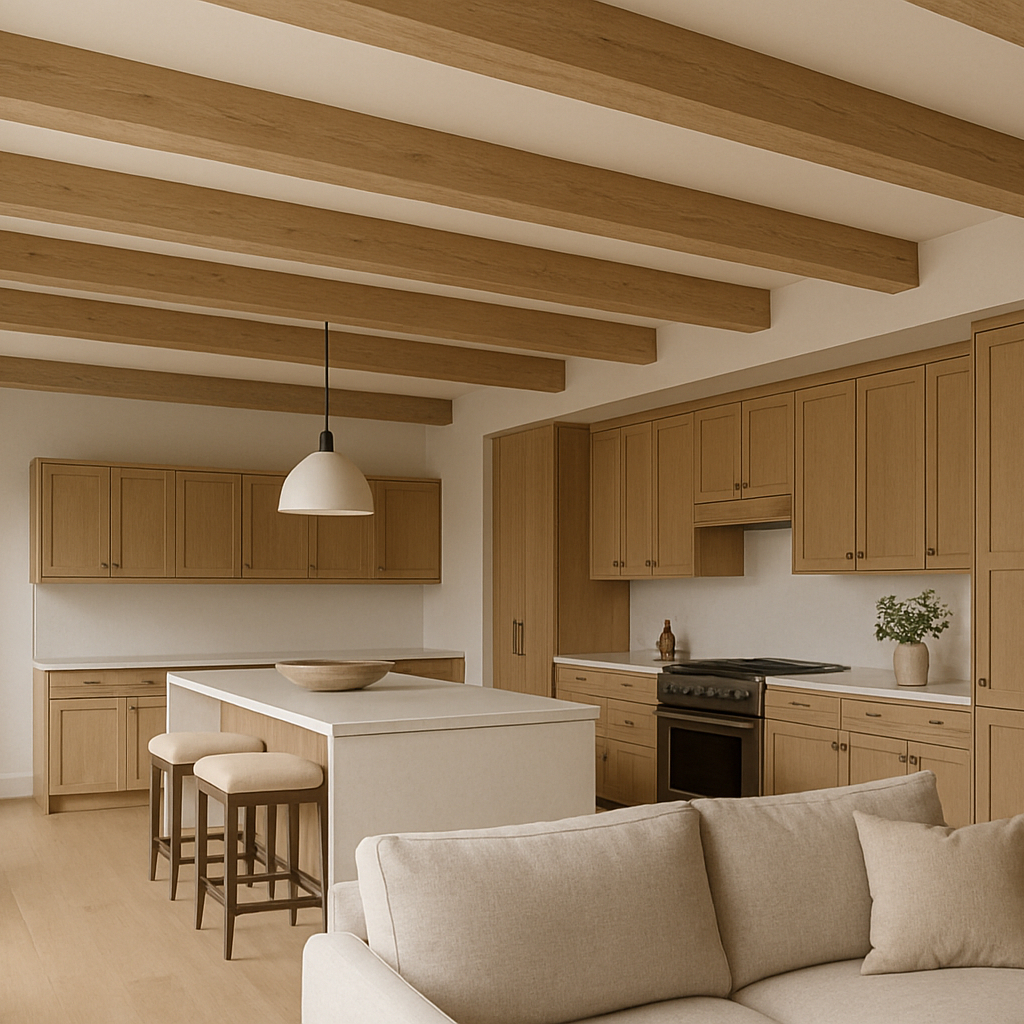 Благодаря своей универсальной форме и разнообразию вариантов отделки, деревянная балка BL-001 органично вписывается в интерьеры различных стилистических направлений: