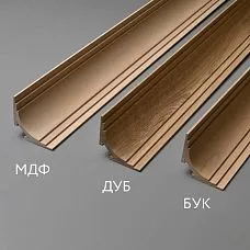 Сочетание с другими погонажными изделиями позволяет создавать сложные многоуровневые конструкции с использованием принципов золотого сечения. Дубовое исполнение особенно эффектно в сочетании с натуральными материалами — мрамором, гранитом, качественным паркетом из массива.